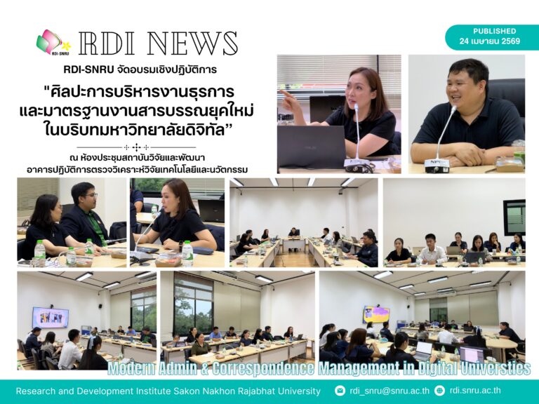 วันที่ 16 ตุลาคม 2566 สถาบันวิจัยและพัฒนา มหาวิทยาลัยราชภัฏสกลนคร จัดทำสัญญารับทุนสนับสนุนการวิจัย จากงบประมาณเงินรายได้ ปีงบประมาณ 2567 ณ ห้องประชุมสภานักศึกษา ชั้น 3 อาคาร 20 โดยมีทุนที่ทำสัญญา ได้แก่