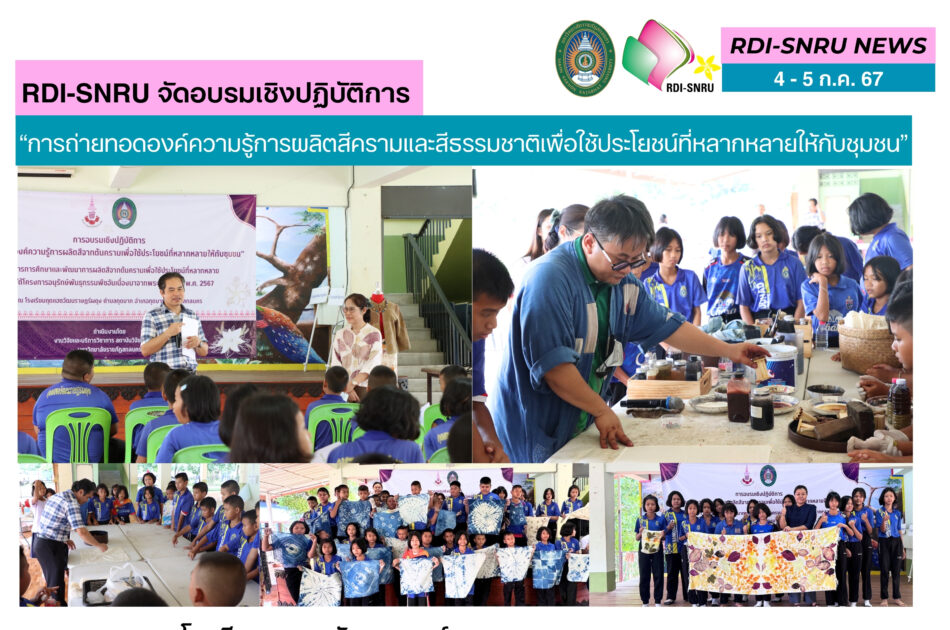 สถาบันวิจัยและพัฒนา มหาวิทยาลัยราชภัฏสกลนคร จัดอบรมเชิง … อ่านเพิ่มเติม อบรมเชิงปฏิบัติการ “การถ่ายทอดองค์ความรู้การผลิตสีครามและสีธรรมชาติเพื่อใช้ประโยชน์ที่หลากหลายให้กับชุมชน”