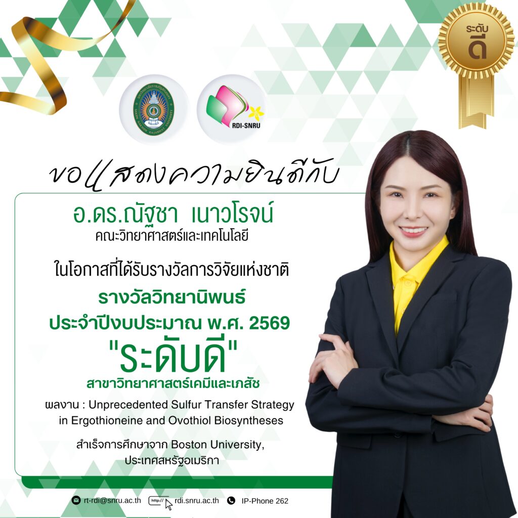 🔍 ผลงานเรื่อง ” การศึกษากลไกของกลยุทธ์การถ่ายโอนกำมะถันแบบใหม่ในการชีวสังเคราะห์เออร์โกไทโอนีนและโอโวไทโอล (Unprecedented Sulfur Transfer Strategy in Ergothioneine and Ovothiol Biosyntheses)”