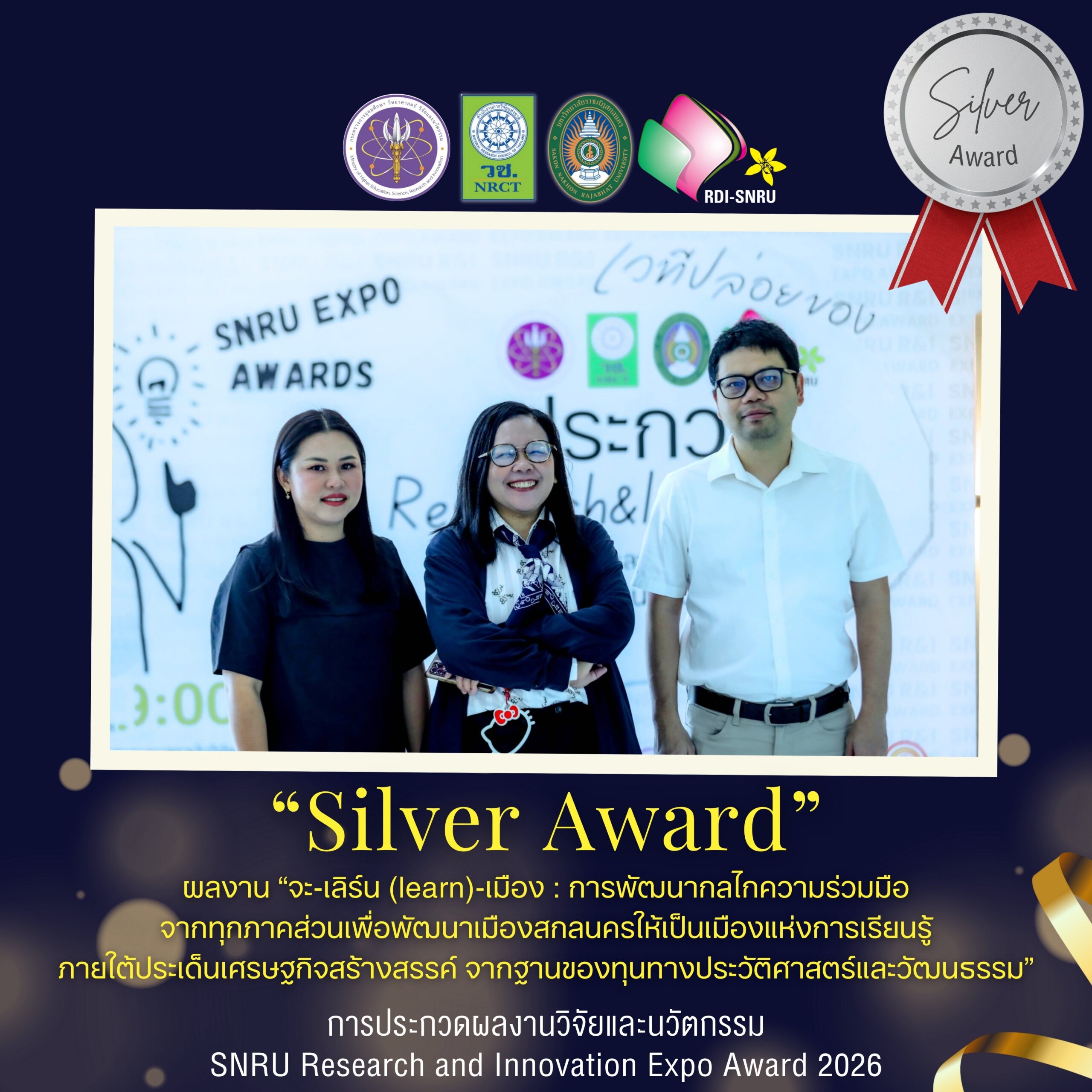 โดยผู้ได้รับรางวัล และผู้เข้าร่วมประกวดทุกท่านเข้ารับโล่รางวัล และเกียรติบัตรในงาน SNRU Research Day ครั้งที่ 1 ในวันที่ 18 กุมภาพันธ์ 2569 ณ หอประชุมจามจุรี 1 มหาวิทยาลัยราชภัฏสกลนคร