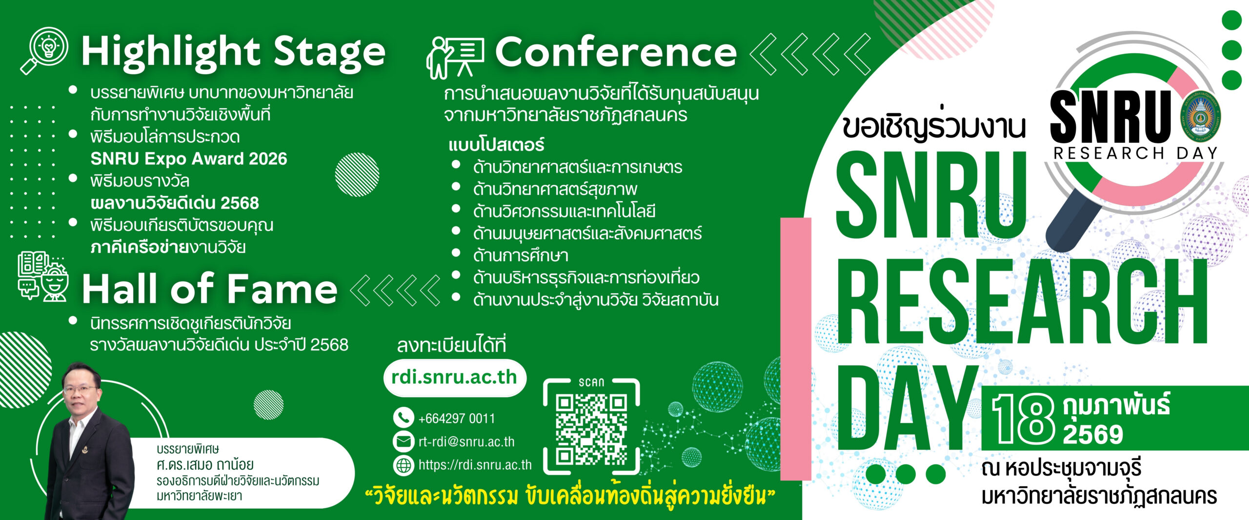 ข่าวประชาสัมพันธ์ “𝗧𝗢𝗣 𝟭𝟬 𝗦𝗡𝗥𝗨 𝗥𝗲𝘀𝗲𝗮𝗿𝗰𝗵𝗲𝗿𝘀” Researchers Ranked by Scopus (2022–2025)Recognition of Research Excellence and Impact15/01/256915/01/2026