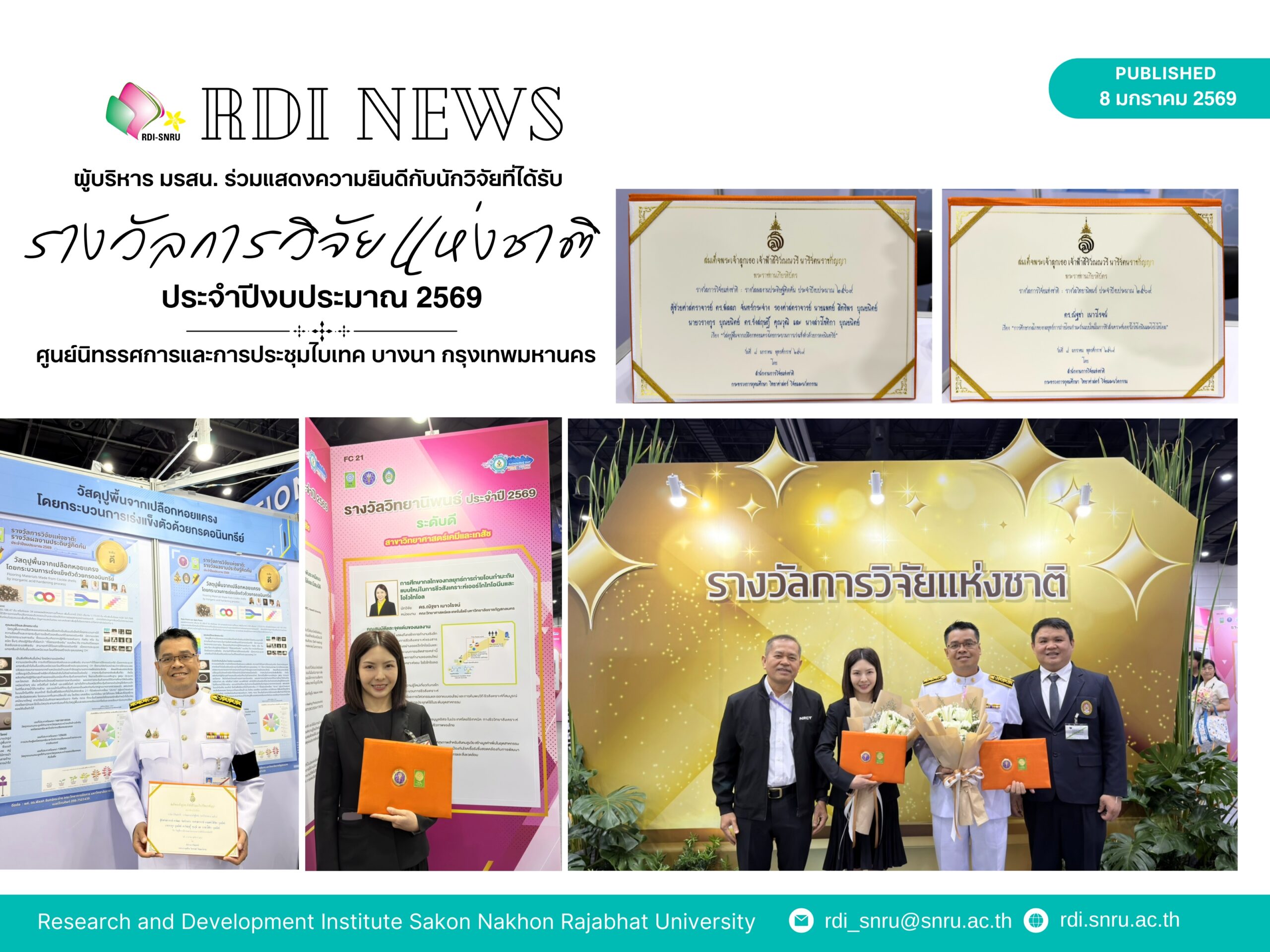 มหาวิทยาลัยราชภัฏสกลนครขอแสดงความยินดีกับอาจารย์และทีมวิจัยทุกท่านที่ได้รับรางวัลอันทรงเกียรติในครั้งนี้ ซึ่งเป็นความภาคภูมิใจและสะท้อนถึงศักยภาพด้านการวิจัยของมหาวิทยาลัยในการพัฒนาความรู้และนวัตกรรมที่มีคุณค่าแก่ประเทศ