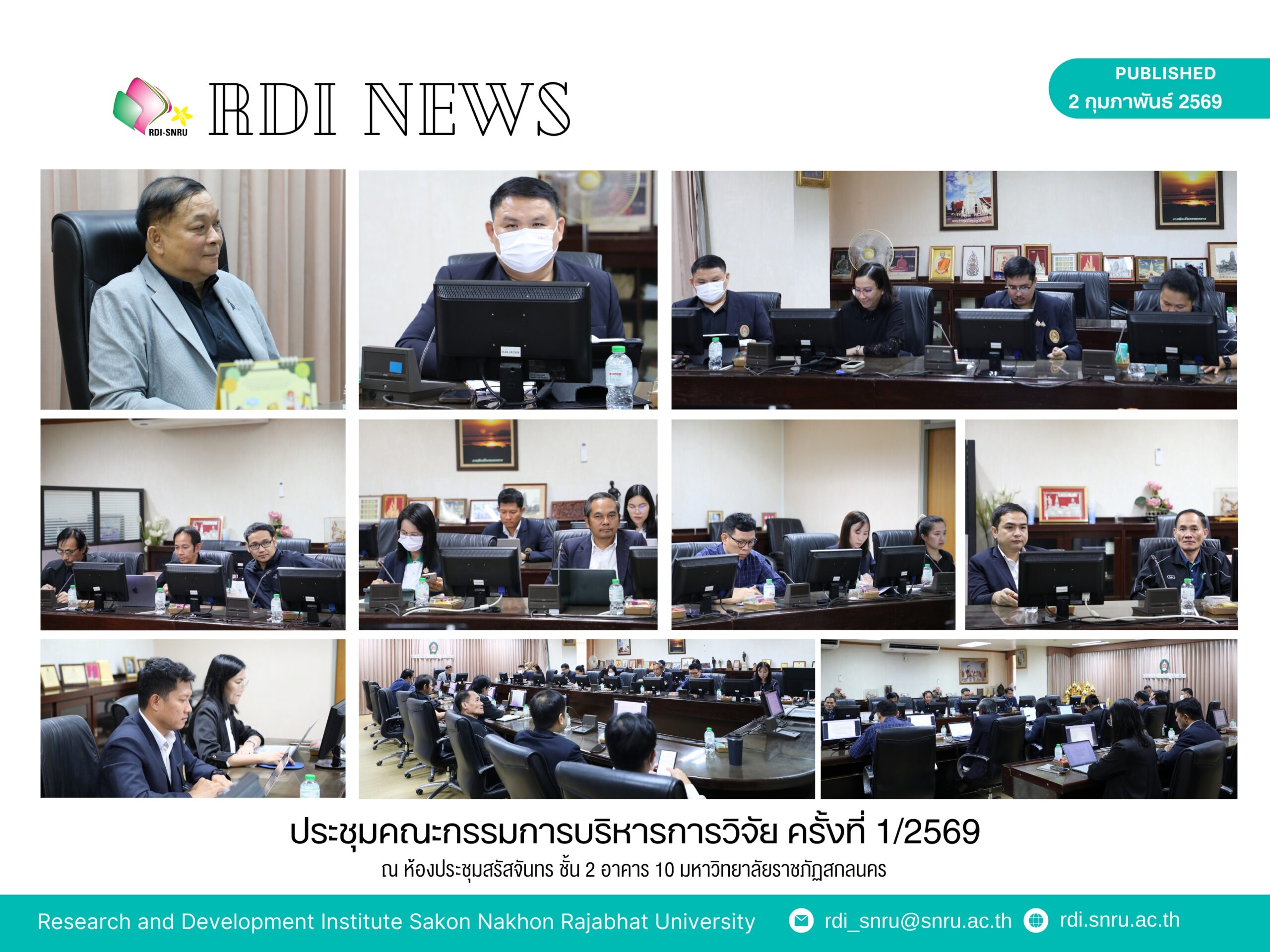สถาบันวิจัยและพัฒนา มหาวิทยาลัยราชภัฏสกลนคร จัดประชุม คณะกรรมการบริหารการวิจัย ครั้งที่ 1/2569 เมื่อวันที่ 2 กุมภาพันธ์ พ.ศ. 2569 ณ ห้องประชุมสรัสจันทร ชั้น 2 อาคาร 10 โดยมี ผู้ช่วยศาสตราจารย์ชาคริต ชาญชิตปรีชา อธิการบดี เป็นประธานการประชุม