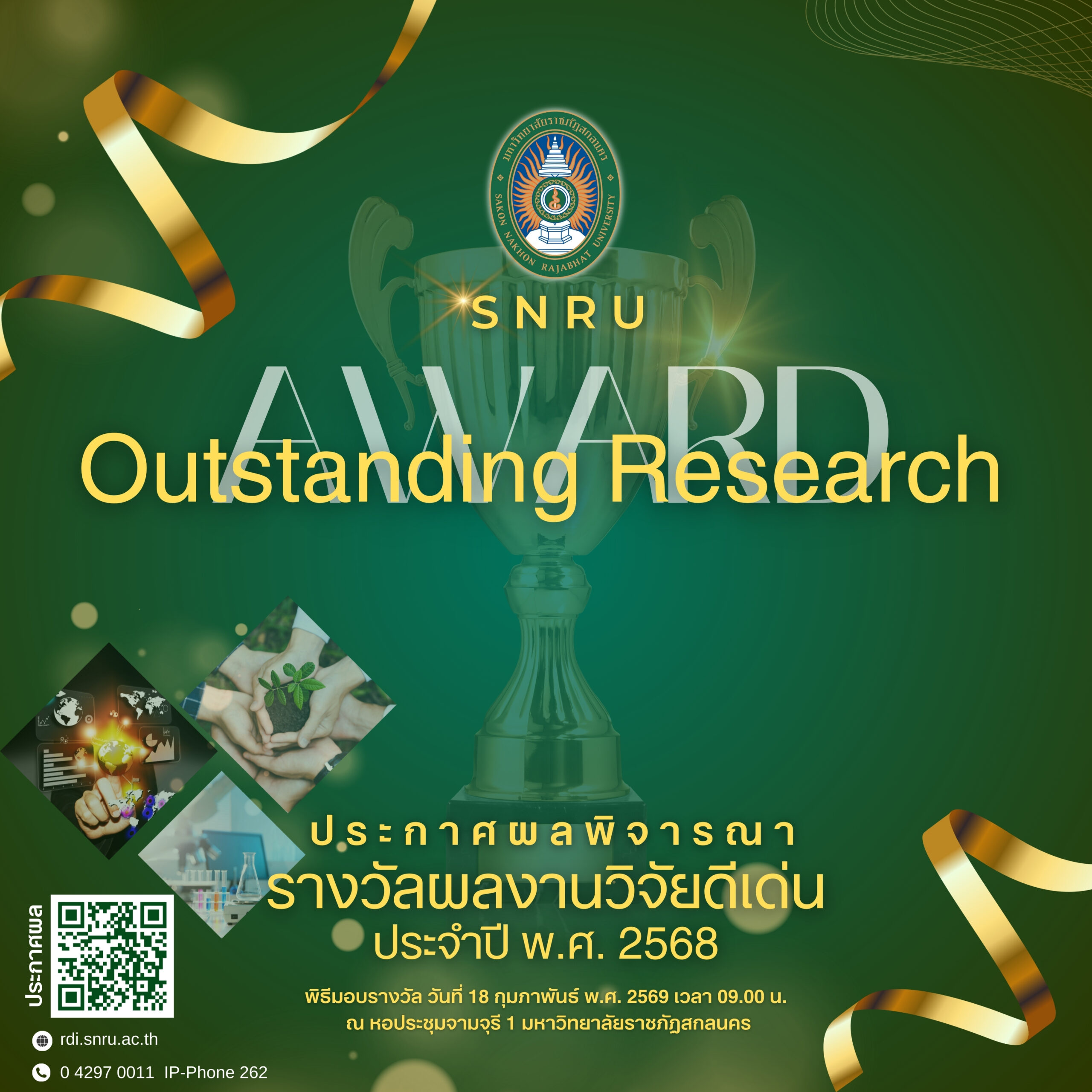 ประกาศผลพิจารณา “รางวัลผลงานวิจัยดีเด่น ประจำปี พ.ศ. 2568” 🏆
