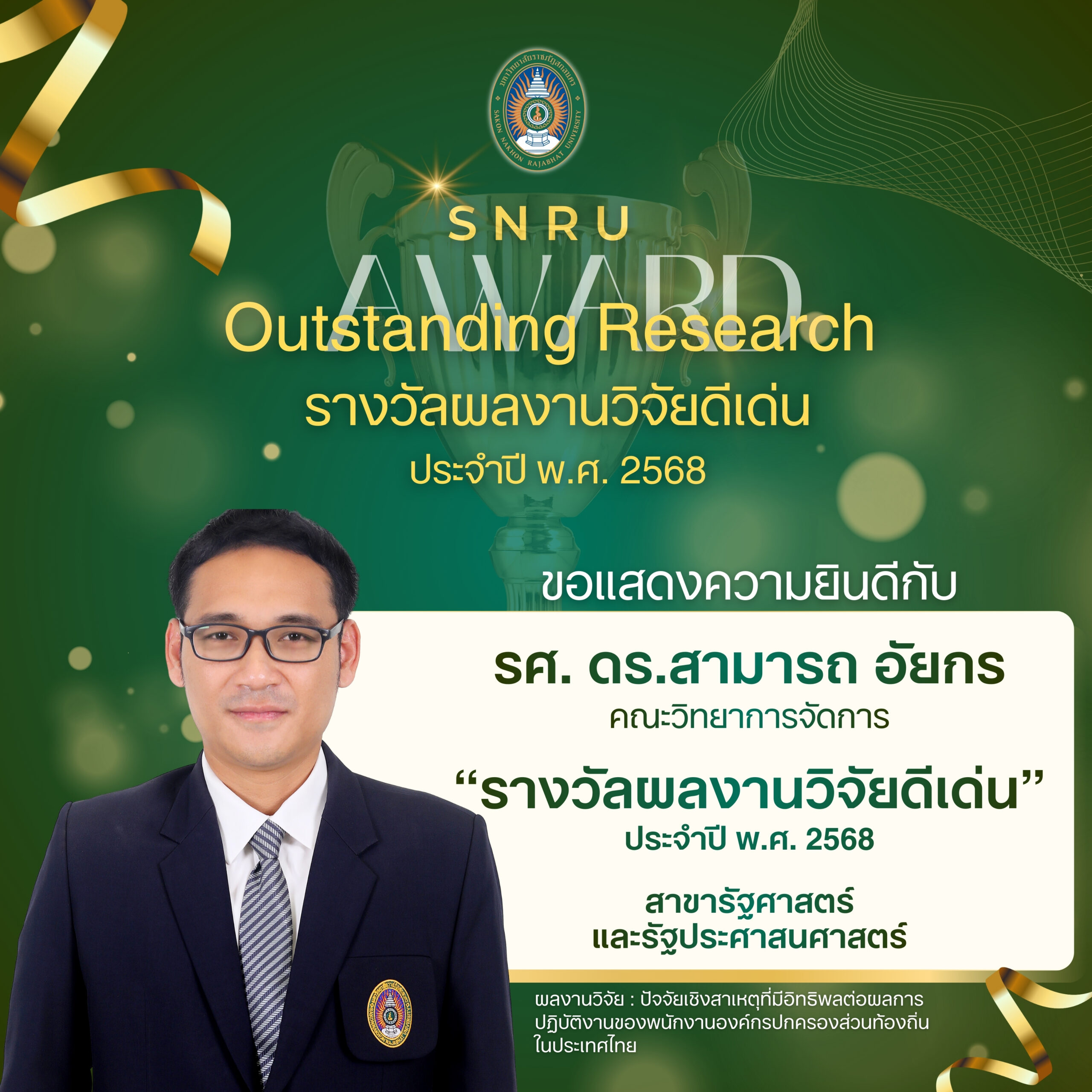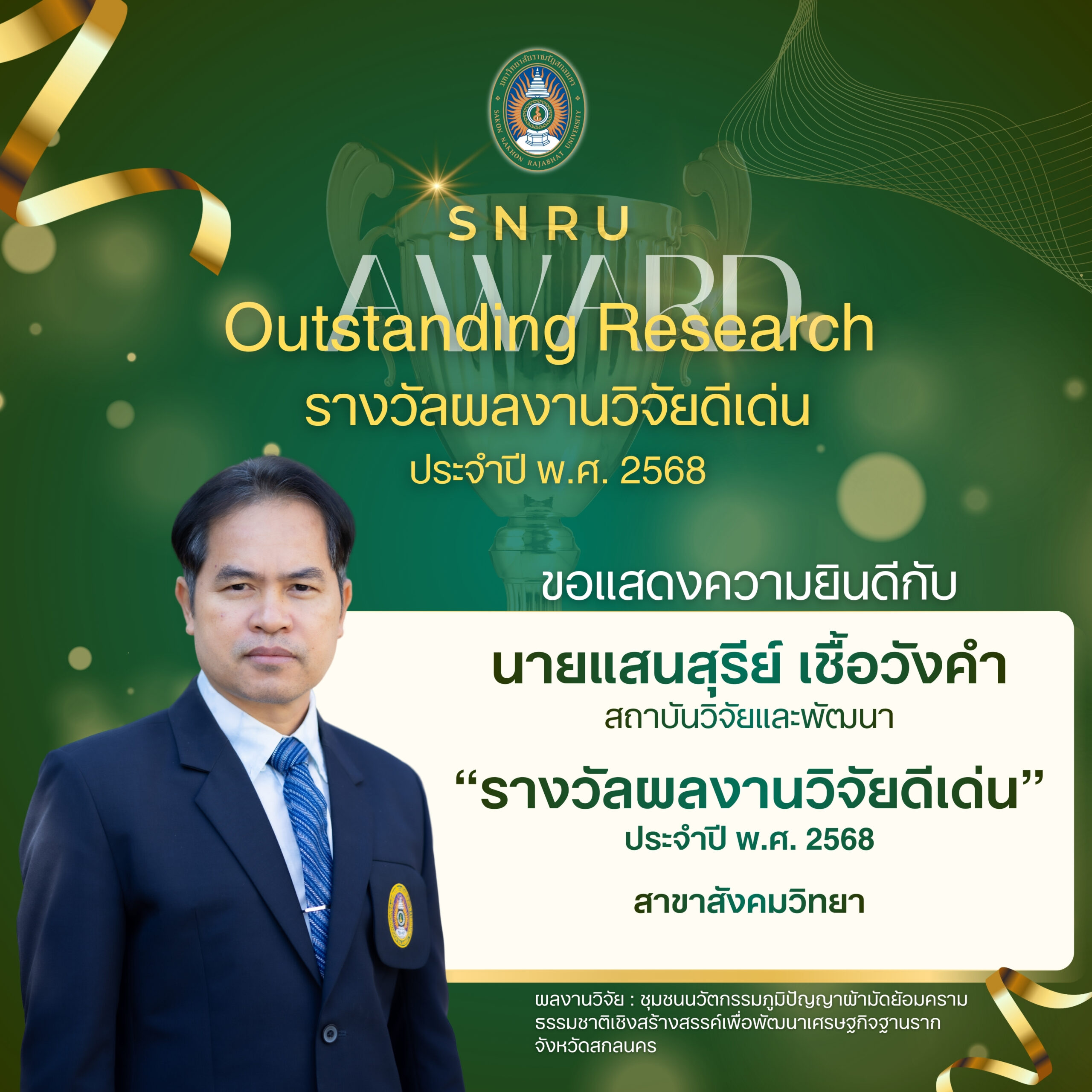 รางวัลผลงานผลงานวิจัยดีเด่น ประจำปี พ.ศ. 2568