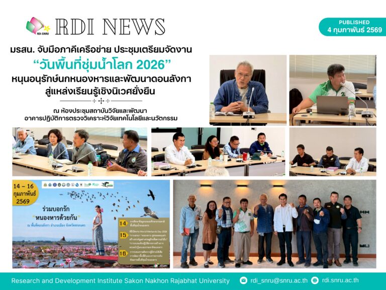 ภาพกิจกรรม มรสน. จับมือภาคีเครือข่าย ประชุมเตรียมจัดงาน “วันพื้นที่ชุ่มน้ำโลก 2026” หนุนอนุรักษ์นกหนองหารและพัฒนาดอนลังกาสู่แหล่งเรียนรู้เชิงนิเวศยั่งยืน04/02/256904/02/2026